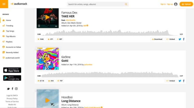 Audiomack is an emerging music sharing platform that has a user-friendly interface which makes it the best SoundCloud alternative. This free music download website is a hub for artists, labels, and music lovers to discover amazing music.
