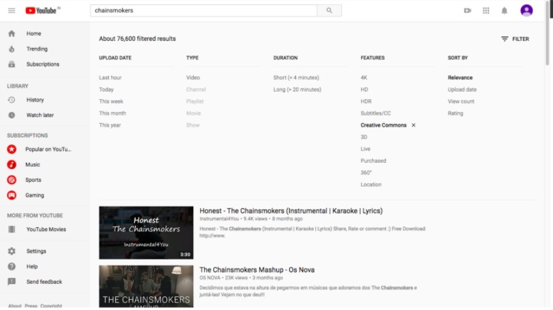 But the reason I have placed it at the end is that obtaining songs from YouTube is tricky. Not all songs on YouTube are downloadable but you can search for songs by setting a Creative Commons license filter and the genre you want.