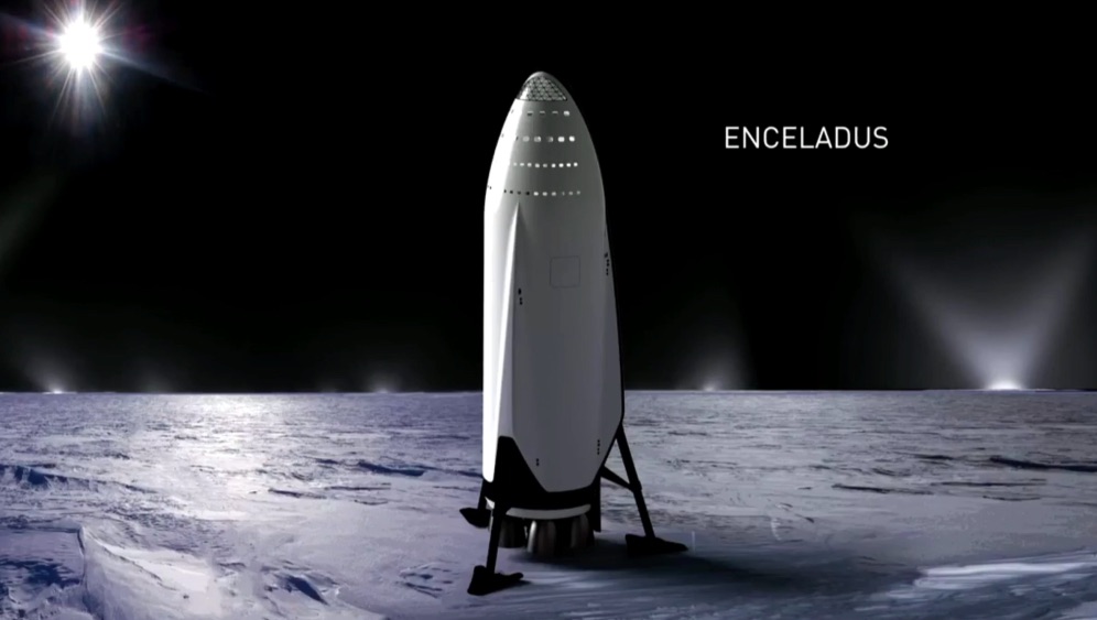 Musk said that using a rocket, spaceship, fueling tanker, and propelling depots, one can go anywhere in the Solar System by “planet hopping or moon hopping”. He showed the slides of his proposed spaceship, featuring Saturn’s rings, Jupiter’s Great Red Spot, and icy moons Enceladus and Europa.
