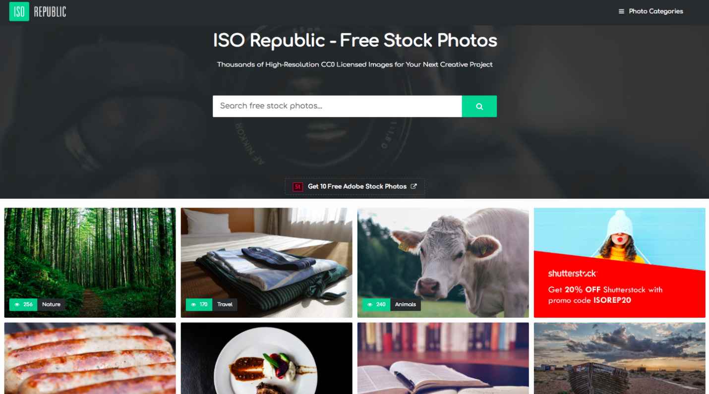 ISO Republic offers free HD images for website designing and blog posts. Its mission is to “provide high-quality images to be used by designers, developers, bloggers, marketers, and social media teams.” So the site publishes royalty free pictures every week and has a fantastic collection of photos. If you want free exclusive photos, sign up for its email list and ISO Republic will mail the photos to your inbox.