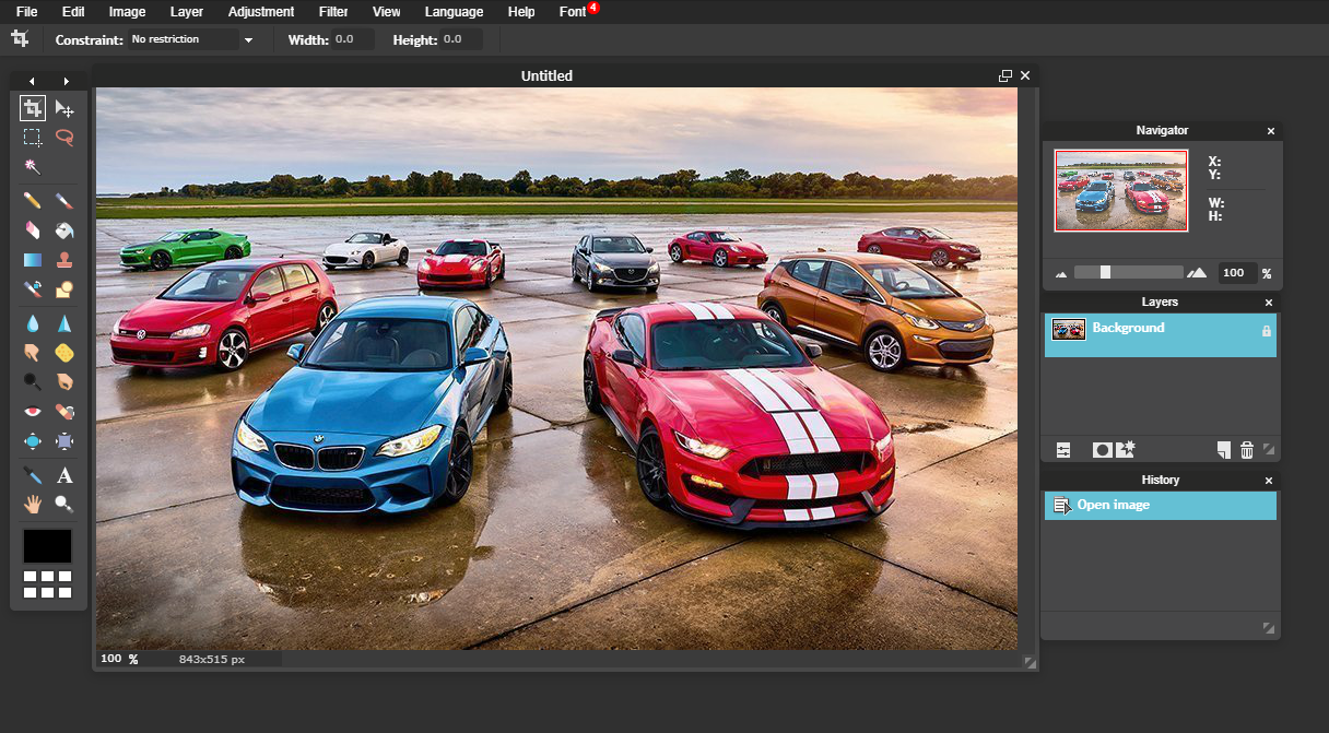 Pixlr Express is for basic images editing which includes cutting, trimming, making a collage using the photos stored on your computer or fetched from a URL. Pixlr Editor is the variant which packs more features including layers, lasso, red eye reduction, various image filters. A Windows app for Pixlr also exists, but it’s not updated anymore.