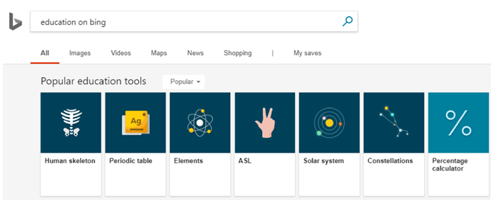 Users can simply type “Education on Bing” to find popular topics explaining in a step by step manner and quizzes for better concept building. Alternatively, one can type specific topics too such as “Solar System” or “Periodic Table.”