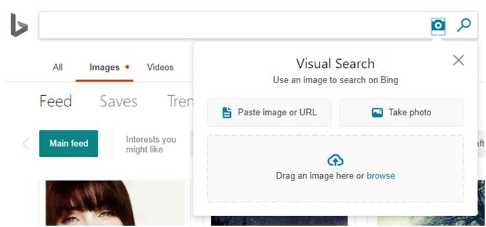 The updated Visual Search will present a new option to do a quick image search by dragging and dropping an image, from Bing or desktop, directly to the image search box. You can also paste an image or URL directly to the search box to conduct image search.