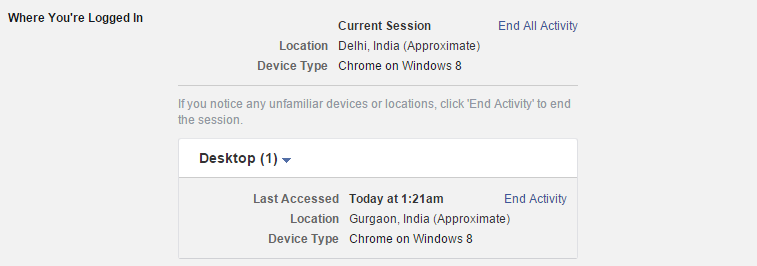 Open Facebook Settings and head over to ‘Security’. There along the ‘Where You’re Logged In’ section click on ‘Edit’. Now choose the device you want to stop and click on ‘End Activity’ to log out remotely.