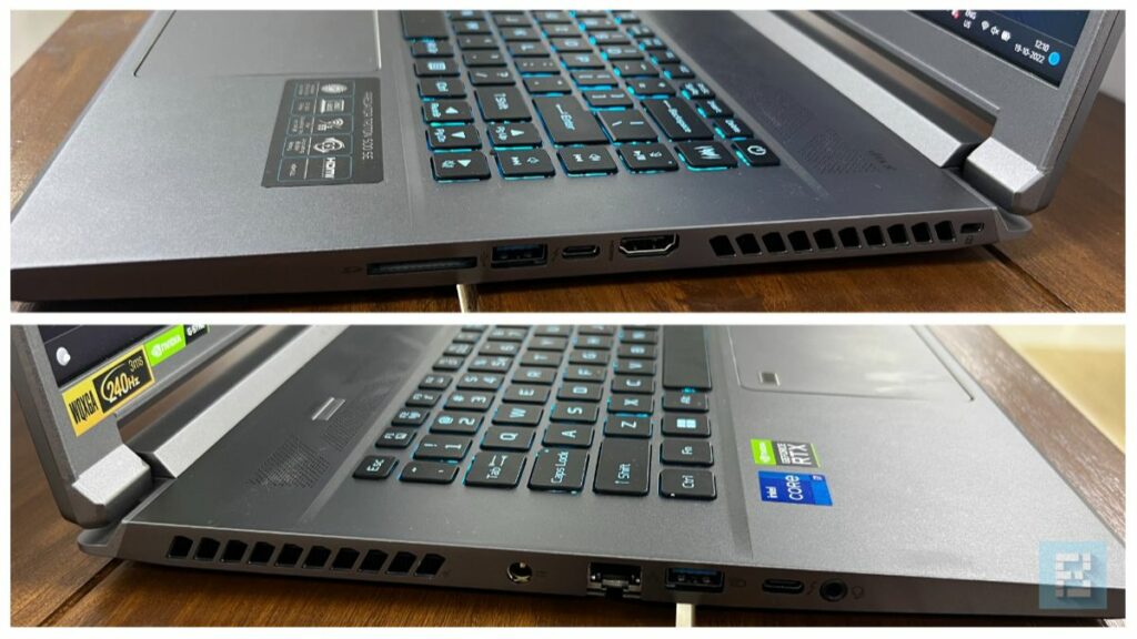 Folks! the laptop is just 19.9mm thick. More importantly, it houses an Intel Core-i7 12700H CPU and an Nvidia RTX 3070 Ti GPU. I want everyone reading this review to remember the same because it doesn’t matter what the marketing jargon for current high-tech cooling is; physics won’t change. To give you a reference, the LG GRAM 17, a thin and light ultra-portable laptop that houses the low-powered Intel Core i7-1260P, is 17.78mm thick. So just like every other thin and light gaming laptop, expect some thermal issues.