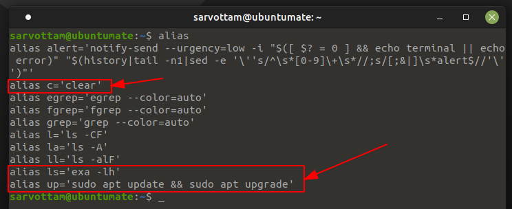 $ echo "alias up='sudo apt update && sudo apt upgrade'" >> ~/.bashrc