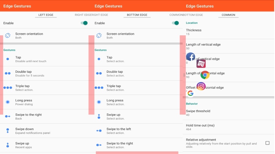 As the name suggests, Edge Gestures is primarily for adding gestures to the edges of the screen. The best feature about this Android gestures app is that you can go to the previous screen on your smartphone by swiping away from the designated edge, similar to what you see in iPhone X navigation.