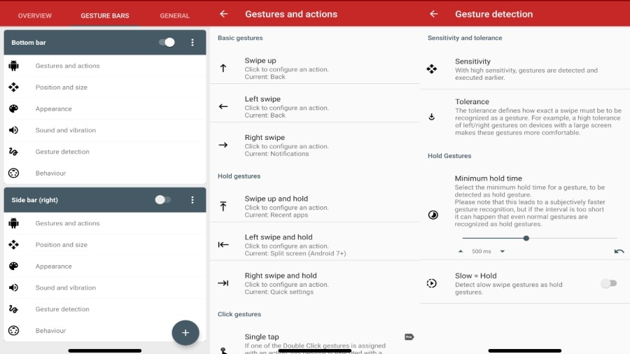 The two main gestures “quick swipe” and the “swipe and hold” can be customized for different actions. You can also personalize many settings of the gesture buttons like their color, sensitivity, theme and much more.