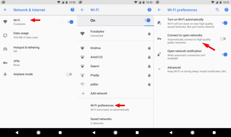 To turn on WiFi Assistant, visit Settings > Network & Internet > WiFi > WiFi Preferences. There enable the toggle option that says “Connect to open networks.”