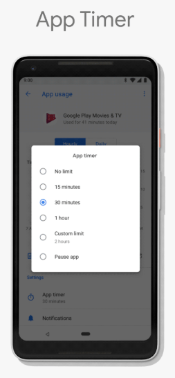 Another step towards Digital Wellbeing is the App Timer feature which lets you set time limits on apps you use for a more extended period.