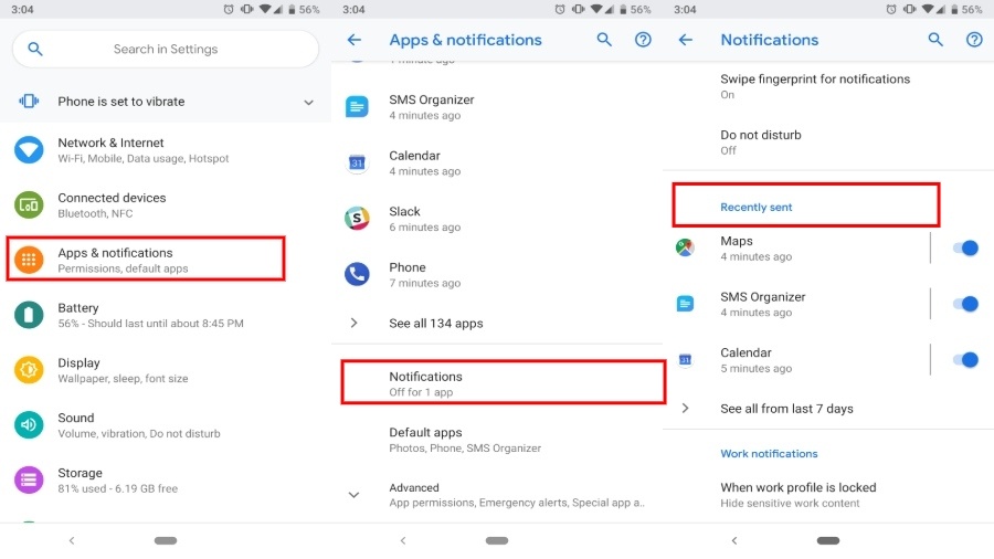 Android Pie brings in the ability to track notifications real-time. The new “recently sent” column makes it easier to disable to irrelevant pings you might have accidentally dismissed.