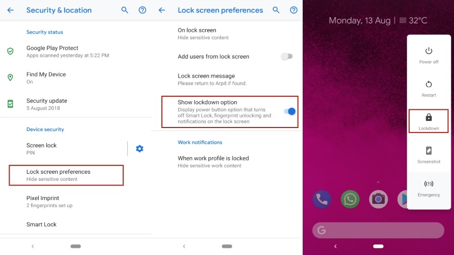 Emergency lockdown instantly disables the fingerprint scanner, and facial recognition, as well as hides all the sensitive content on the lock screen.
