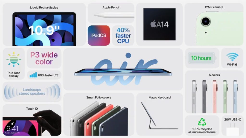 Speaking of other features, the 2020 iPad Air comes with WiFi 6, support for Magic keyboard, faster LTE connectivity, 20W fast charging, etc. The device will be available from next month in over 30 countries, with the starting price of $599 (WiFi) and $729 (WiFi+Cellular) for the US.