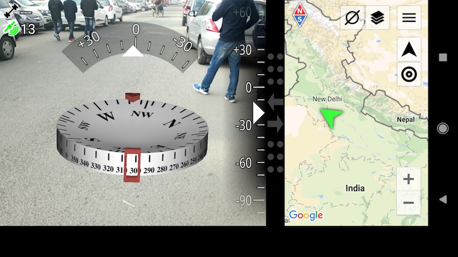This can be a very unique and useful AR app for navigation. In split screen, it shows a map with your configured destination and an overlay of a compass pointing over your camera view.