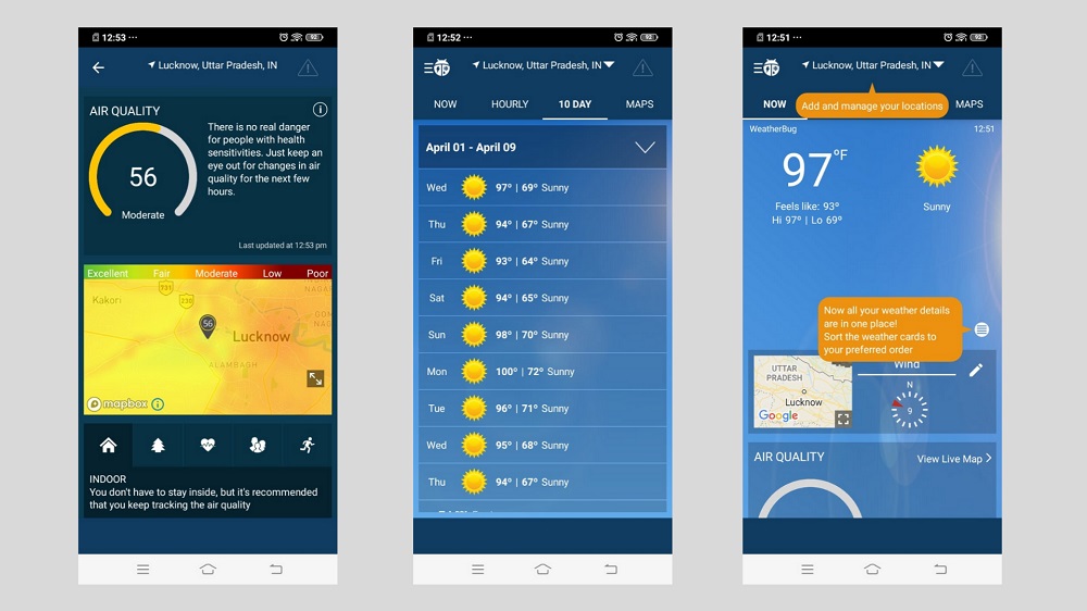 Today Weather also provides alerts for strong winds, heavy snow, and rainfall. The best part about the app is it provides relevant information about the air quality index (AQI) also.