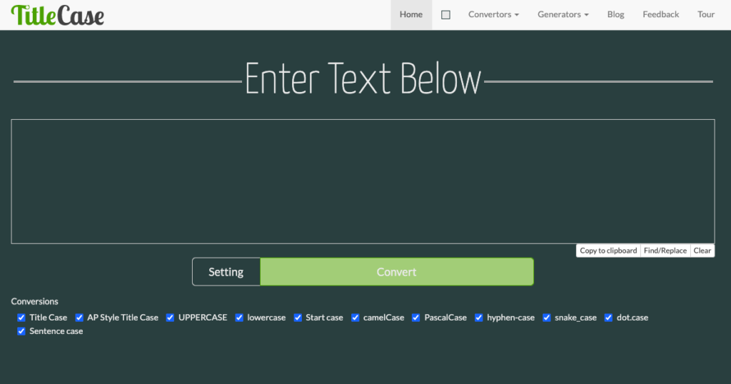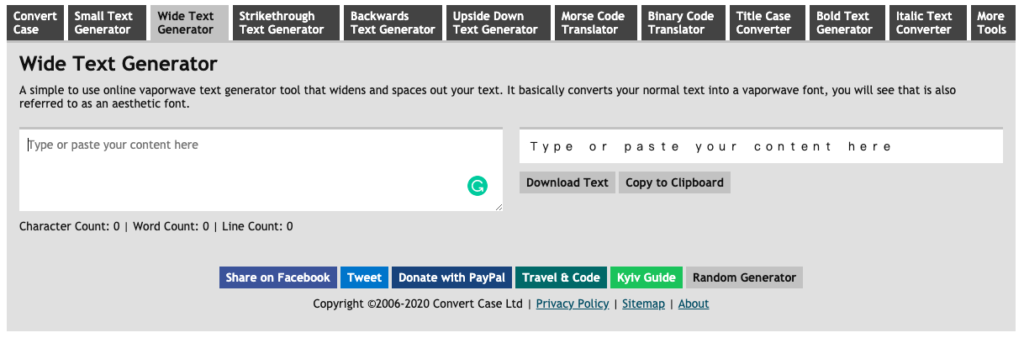 Convertercase is the best free case converter tool on this list because because it offers something beyond the standard title capitalization upper/lowercase. It gives you a bunch of unique case options like Wide case (adds extra space between letters) and Background case (reverse the sentence and its letters).