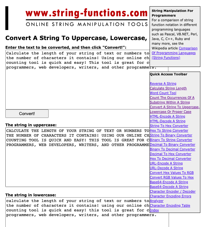 Although String Functions mostly contains basic free case converters such as uppercase, lowercase, etc. The reason for adding this to the list is the catalog of string manipulation options it offers, which might come in handy at times. One of the most useful tools that you might need along with a text converter is a word counter .