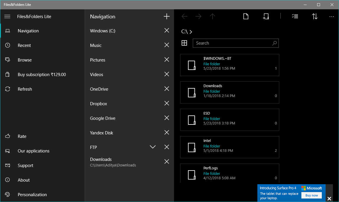In addition to the system folders already listed, you can click the + button to add any folder. This windows file manager comes with FTP support and OneDrive integration, but a paywall protects support for Google Drive, Dropbox, and Yandex Drive.