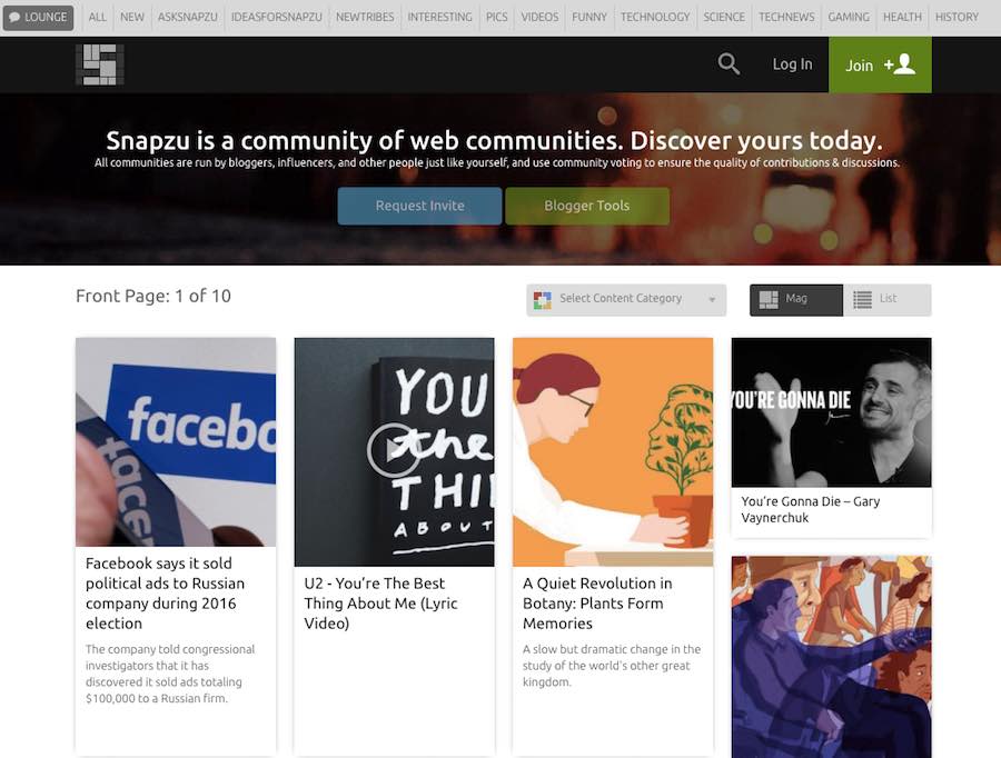 The whole Snapzu’s layout is tab-based. You can upvote or downvote the posts. The individual communities are called “tribes”. On this site like Reddit, you can also choose different tribes from links at the top bar.