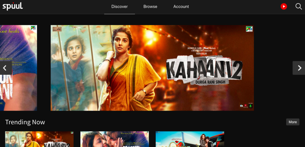 Spuul is another good site to watch Hindi movies online for free in 2025. The website has a clean interface with a dark mode, which is visually appealing. While many of the movies fall under the premium segment, under which you can choose to pay Rs. 99 per/month to watch new Bollywood movies online.