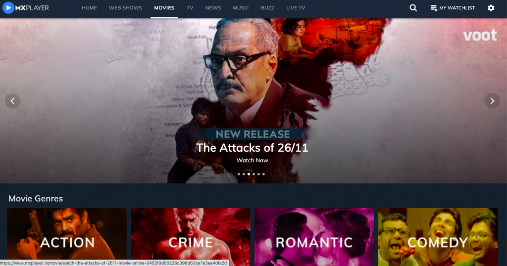 The content on this Bollywood movie website is further divided into Trending, Drama, Hindi, South Indian, Romantic, Comedy, Action, etc. Moreover, to watch the free content, you don’t even need to sign up.
