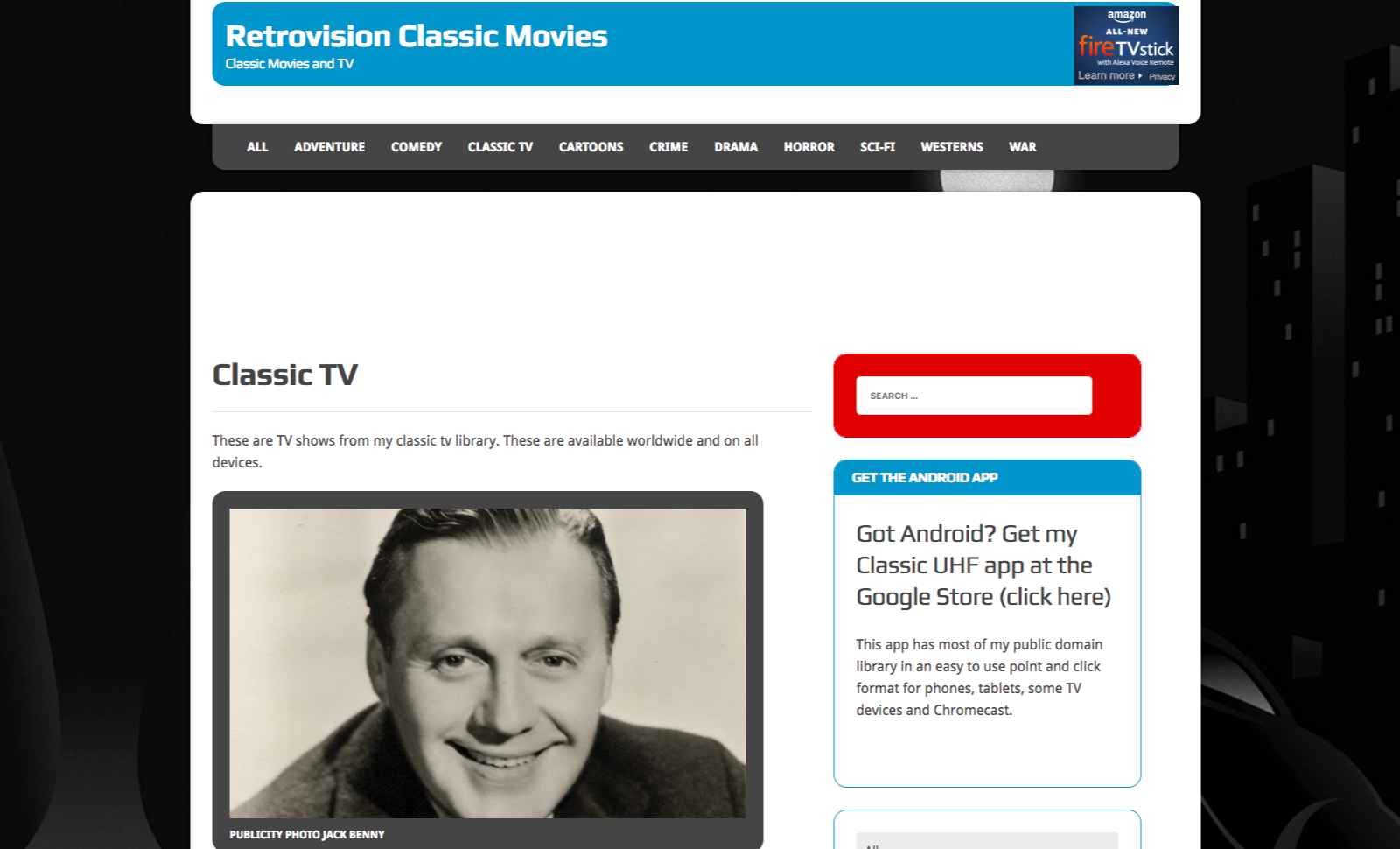Navigating the website is pretty easy, and you will find all the shows listed on a single page. From Sherlock Holmes to Star Trek, Retrovision has an extensive array of shows straight from the ‘50s and ‘60s. In fact, it has an amazing collection of cartoons for kids like Popeye and Superman back from the old days!