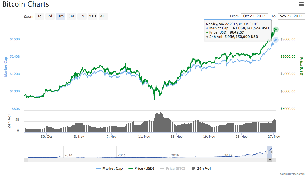 While you might be still struggling to recover from all the goodies you gulped over the Thanksgiving dinner, Bitcoin has continued hustling to make its way towards the magical mark of $10,000.