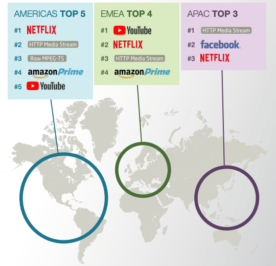 As per Sandvine’s Cam Cullen, “More sources than ever are producing “exclusive” content available on a single streaming or broadcast service—think Game of Thrones for HBO, House of Cards for Netflix, The Handmaid’s Tale for Hulu, or Jack Ryan for Amazon.”