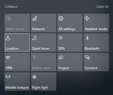 To disable location history, on your Windows 10 PC, open the Action Center and click the Location quick action button (Read this post for more tips about using Action Center ).