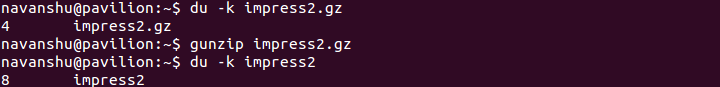 Consider the following example, suppose I wish to compress a file named “ impress2” , then I will proceed as follows: