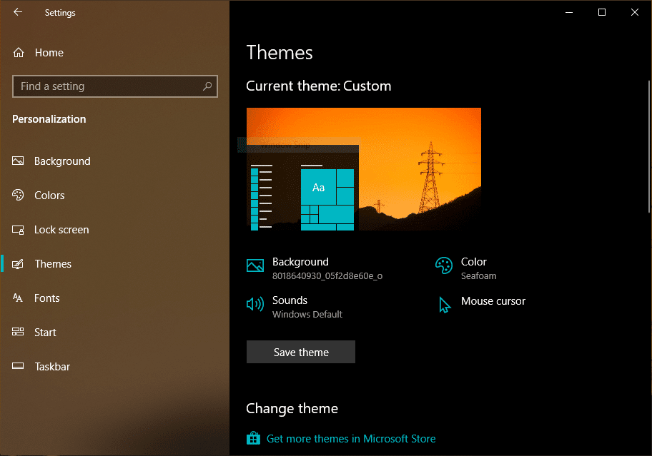 After you’re done, you can save a Windows 10 theme containing all your settings. If you have the same Microsoft account logged in on other computers, it will get synced to them as well.
