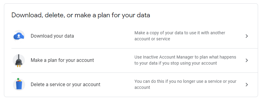 - Click on Make a plan for your account to use the Inactive Account Manager.