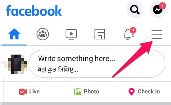 Open the Facebook app on your phone and tap the Hamburger menu icon. Tap on the