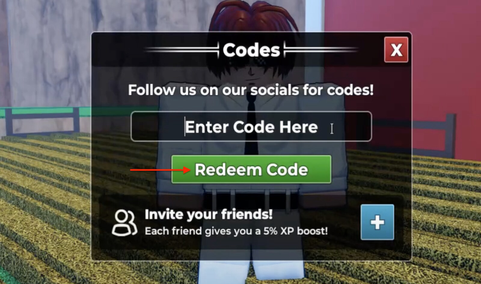 Click the Codes button, enter your desired codes, and hit Redeem.