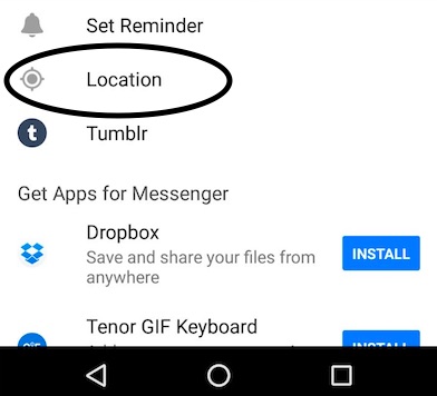 After tapping the More button, you’ll see different options. For example, in my Messenger app you can see Location, Set Reminder, Tumblr, etc. Now, click on the Location button.