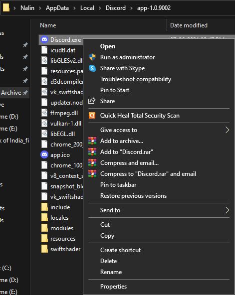 1. Right-click on the Discord icon and select Open file location or open Windows File Explorer and directly go to C:\Users\username\AppData\Local\Discord .