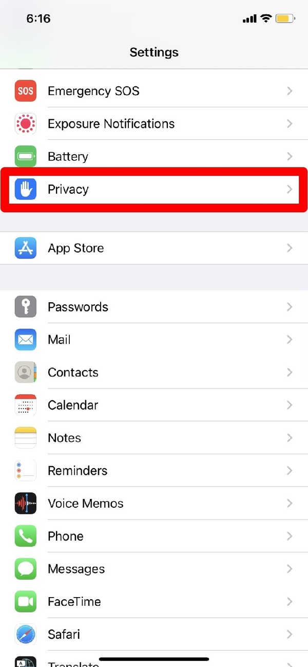 4. In the WhatsApp menu of privacy settings, change the allow photos access to “All Photos.”