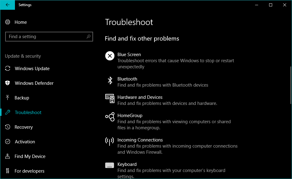 If you are running the Creators Update or later, Microsoft has got you covered in case a Windows 10 BSOD occurs. You can fix the blue screen of the death using the built-in troubleshooter. Go to Settings > Update and security > Troubleshoot .