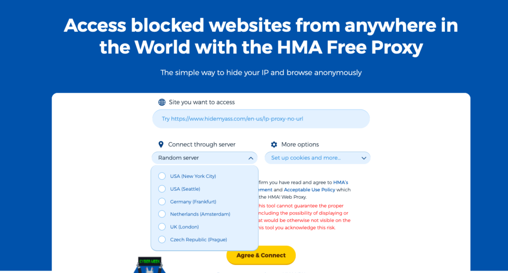 HMA or Hide My Ass is a rather popular website used by several users to bypass internet censorship. HMA offers a regularly updated free proxy service that allows you to hide your original IP address and routes your internet traffic via proxy address.