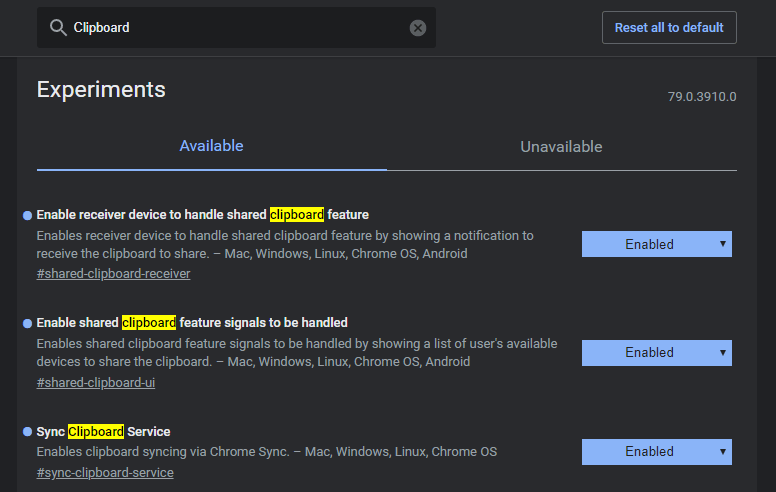 - Go to Chrome://flags > Type Clipboard in the search bar.
