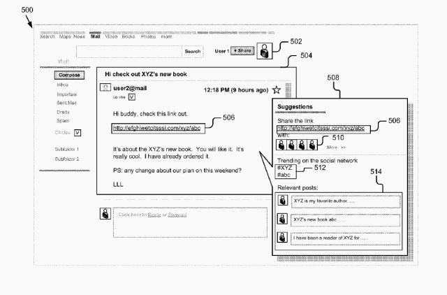 The patent gives the users a choice to select the number of people — entire social network, a selected group of friends, a particular person — and share the relevant links with them.