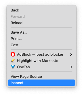 2. Right-click anywhere on the screen and select “Inspect” on the menu that appears