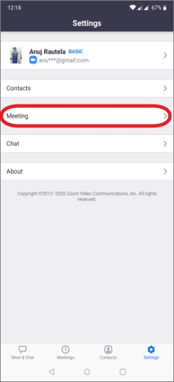 Open the Zoom app on your smartphone and look for the ‘Settings’ option in the bottom right corner. Click on it.