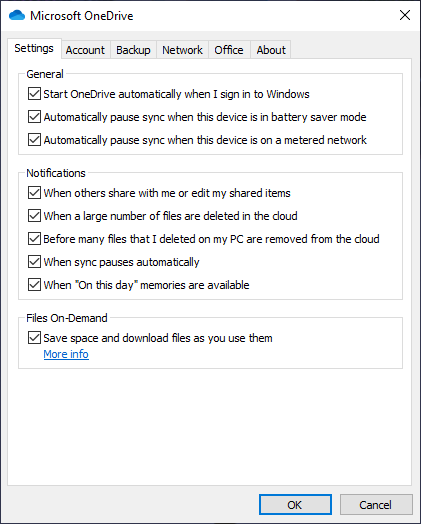 In the Settings tab, you find a feature called Files On Demand . It’s enabled by default and downloads the files to your system only when you access them through the OneDrive folder. The feature is meant to save space on your hard drive.