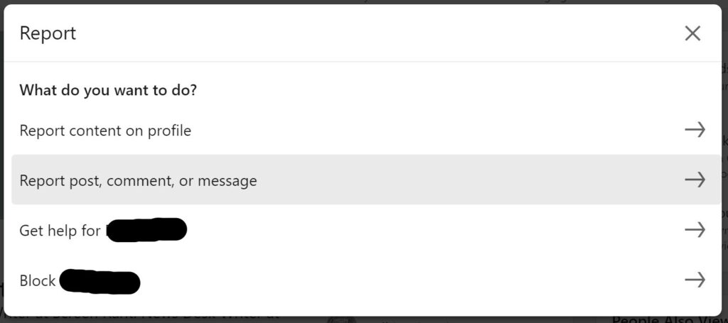 2. Select the More option below the member’s profile picture and click on Report/Block .