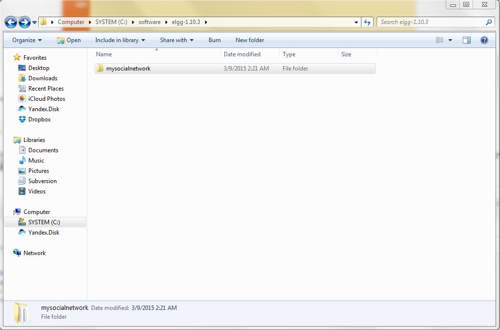 Now open your XAMPP directory and move to htdocs folder and copy the above mysocialnetwork folder here.