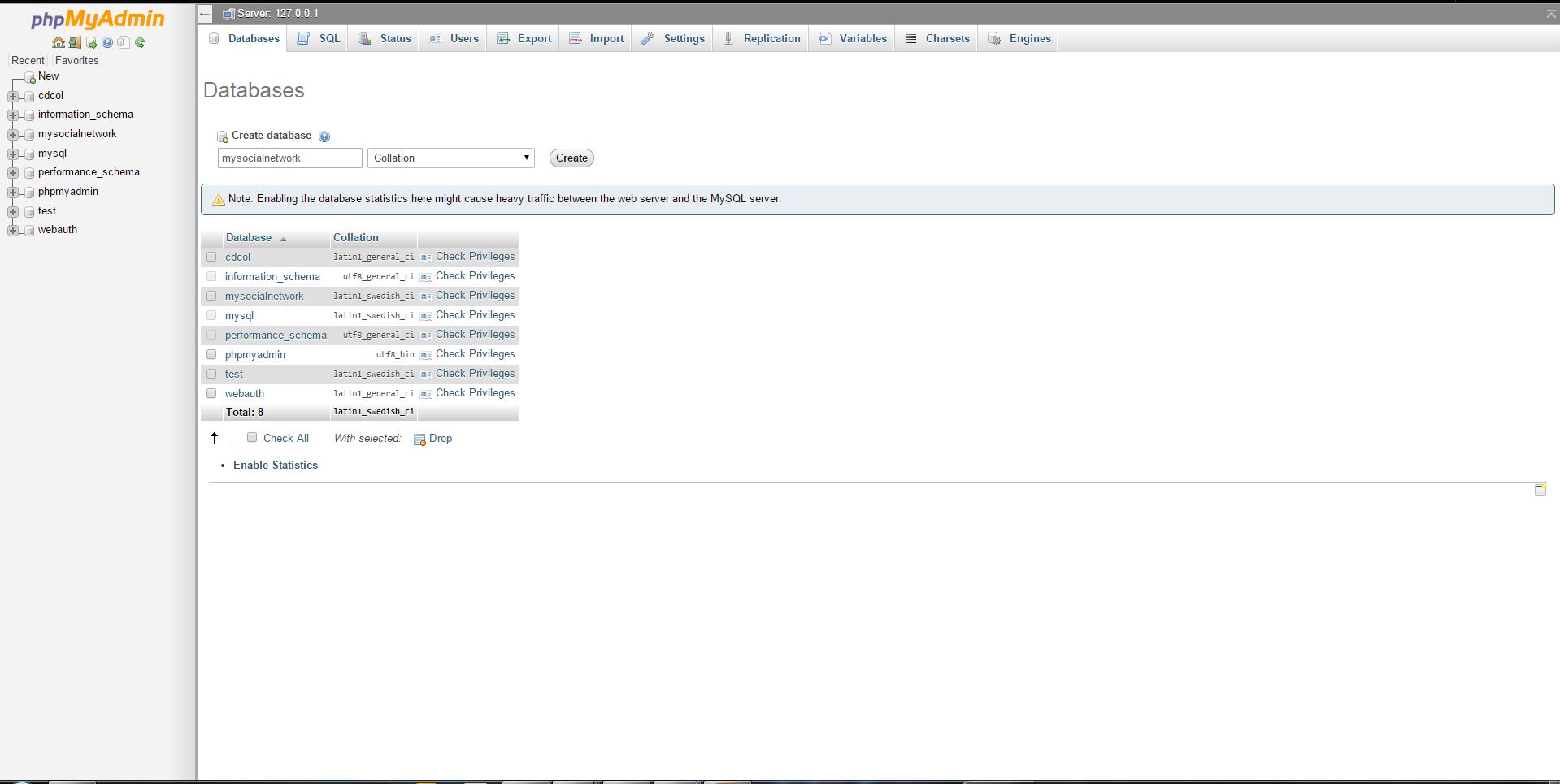 Now create a database for your social networking website which we will use in database installation setup of Elgg. e.g. we create mysocialnetwork database.