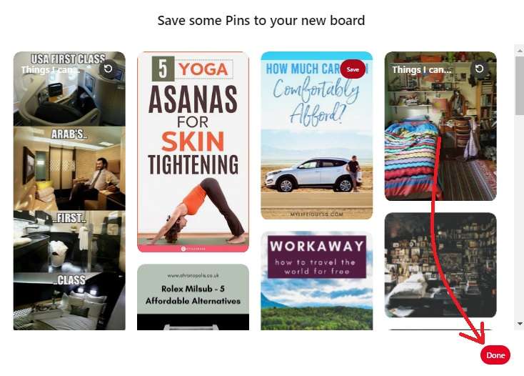 5. Optionally, you can save some pins from the suggested ones. Finally, click on “Done.”