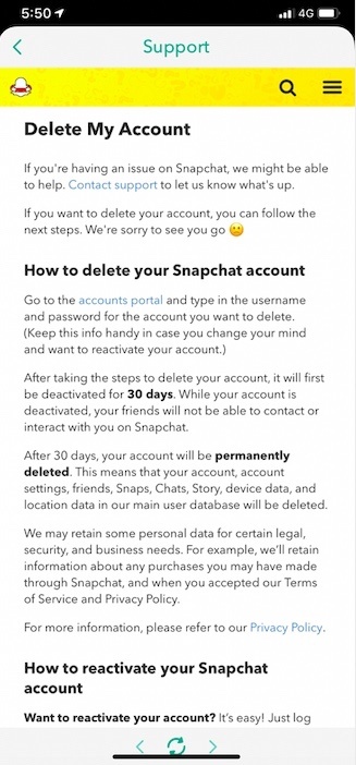 As a quick reminder, once you perform the aforementioned functions, via whichever method you like, your Snapchat account will be deactivated for just 30 days and not completely deleted —just in case you change your mind before 30 days, and wish to return to the app.