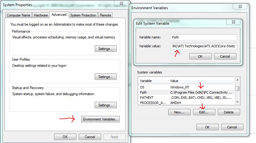 - In the Environment Variables window, select Path and click on Edit . Type the name of directory path where the SDK is installed. Don’t forget to add semicolon separating the entries.